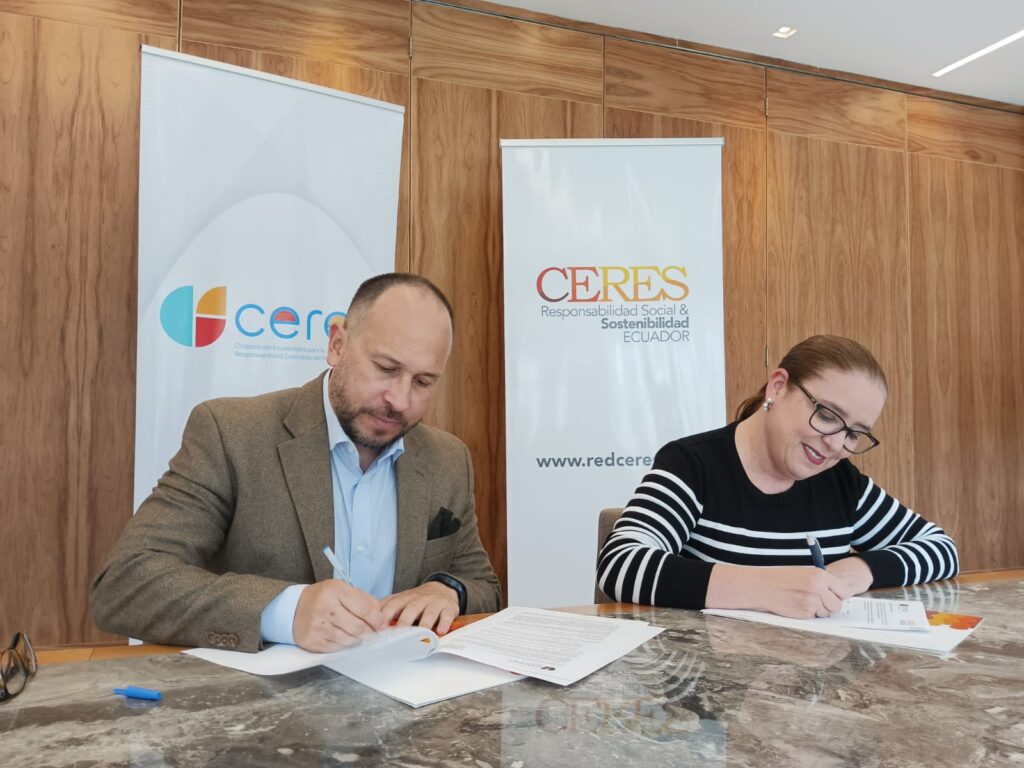 Quito, mayo de 2024.- La Corporación Ecuatoriana para la Responsabilidad Social & Sostenibilidad (CERES) y la Corporación Ecuatoriana para la Responsabilidad Extendida del Productor (CEREP) firmaron un acuerdo para trabajar de manera conjunta en la socialización, el fortalecimiento, la capacitación y el desarrollo de proyectos enfocados en generar consumidores y sector empresarial comprometido y responsable alineados al cumplimiento de las regulaciones ambientales vigentes en Ecuador.